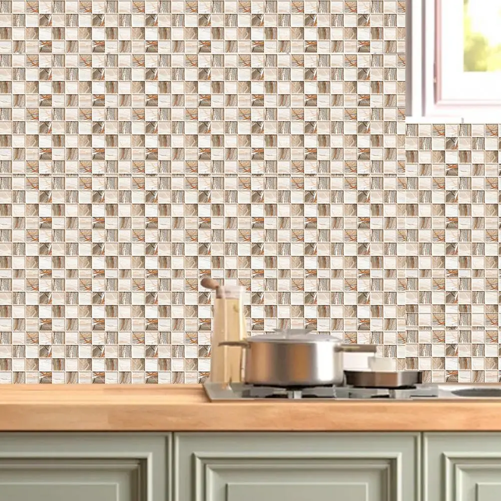 10 Pcs 10cm Tile Wall Stickers Plaid Self-Adhesive Stickness Heat Resistant Decoration Kitchen Bathroom Wall Protect Stickers
