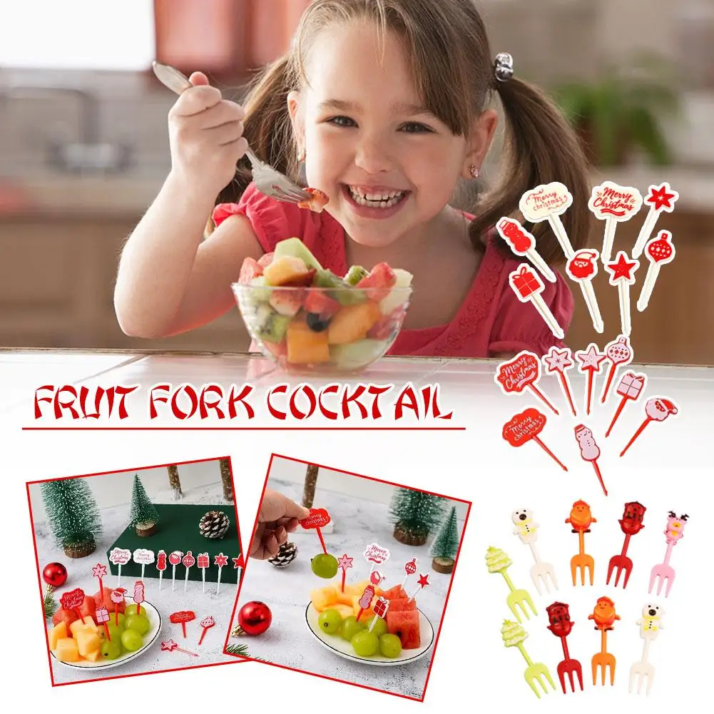 Christmas Hallowee Fruit Fork Kids Food Pick Reusable Lunch Cake Dessert Snack Christmas Fork Decoration Box Toothpick Sala P2t3