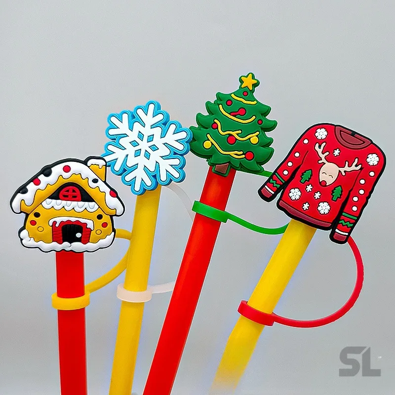 Christmas Tree Snowflake Straw Topper Reusable Preventing Spillage Casual Straw Cover Dessert Drinks Cups Dustproof Decoration