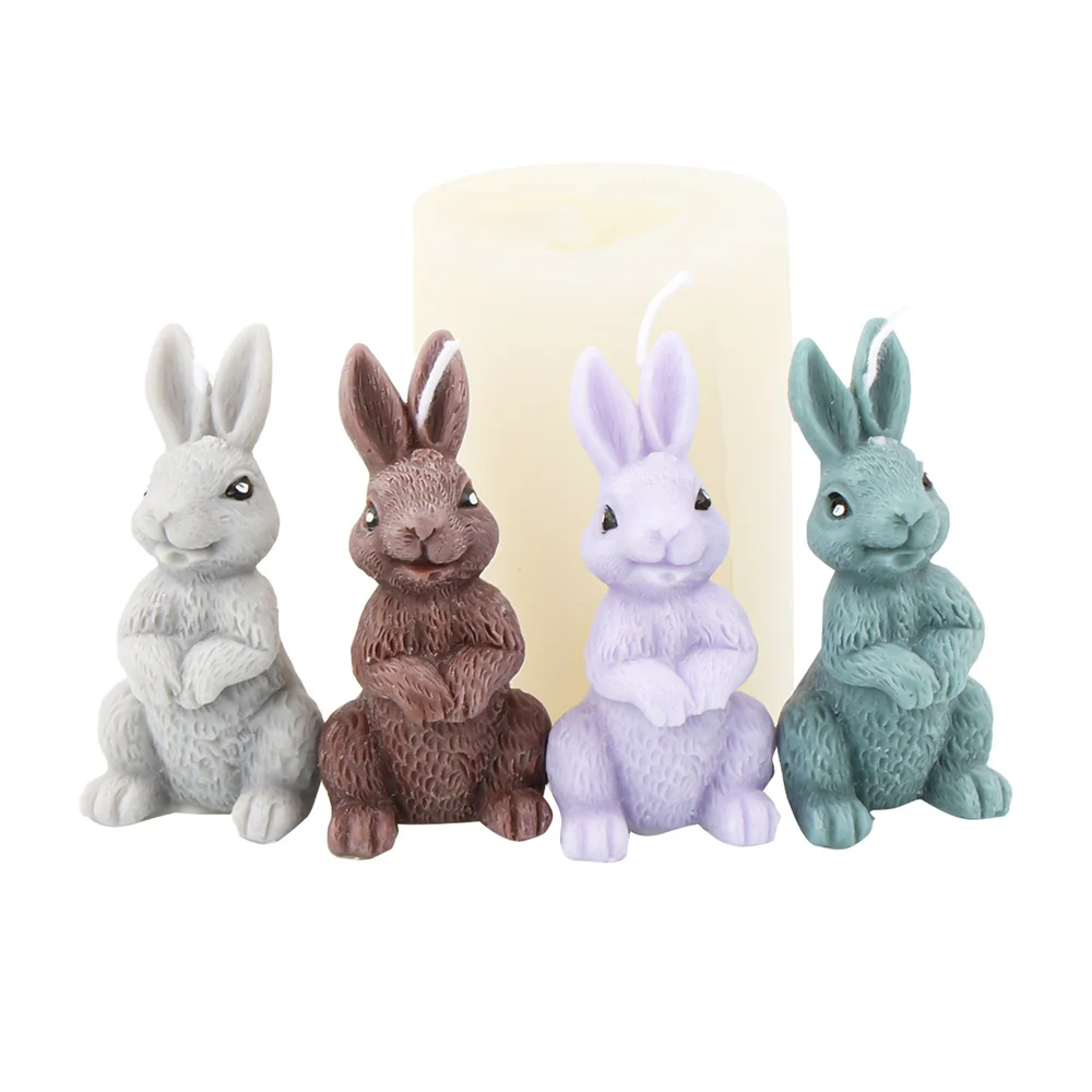 Cute 3D Standing Rabbit Candle Soap Slicone Mold DIY Easter Bunny Cake Sugarcraft Fondant Mould Home Decor Craft Gift Tools