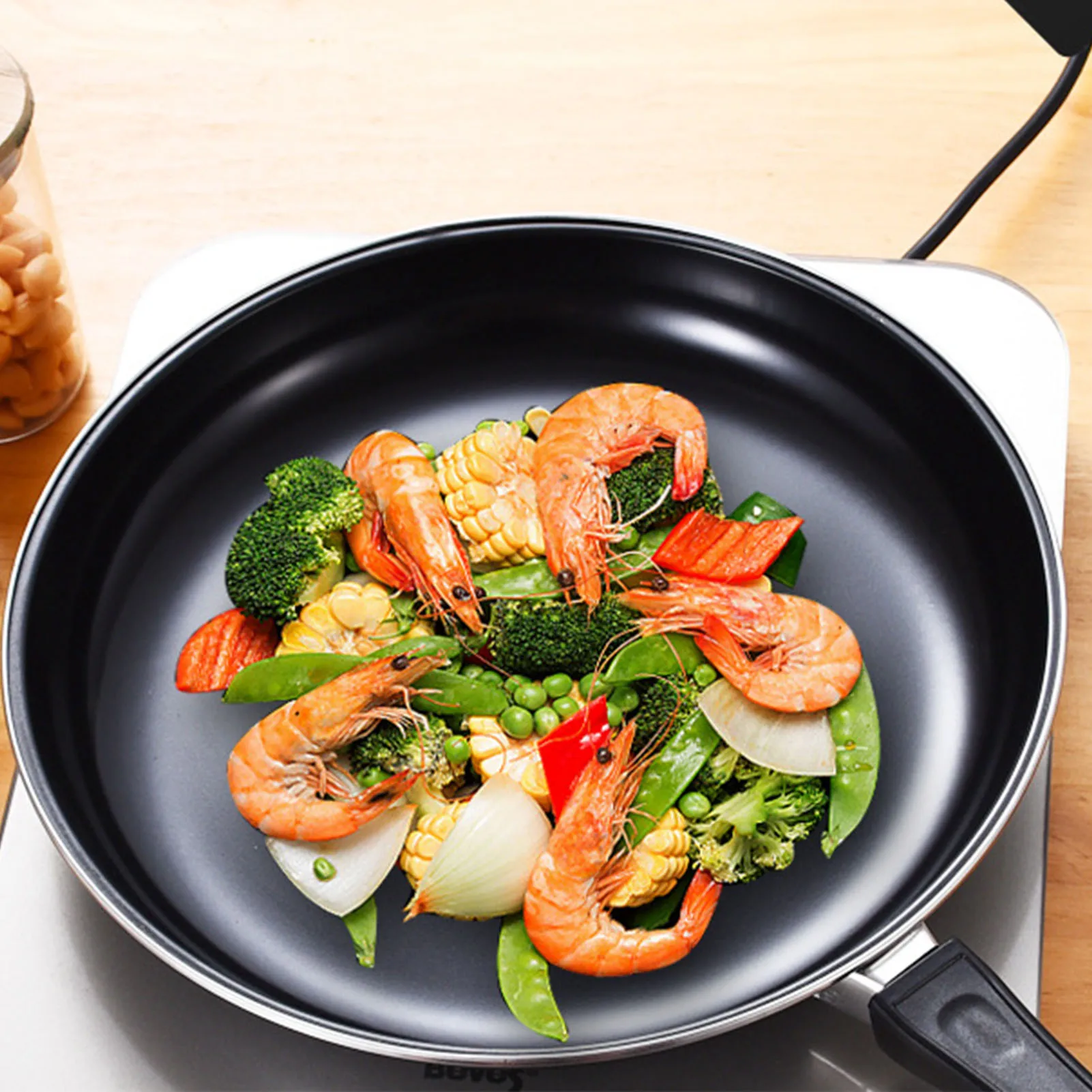 2. Uniform Heating: The frying pan features round flat bottom design, ensures even heating and heat distribution, for consistent cooking results, which is suitable for various cooking projects.