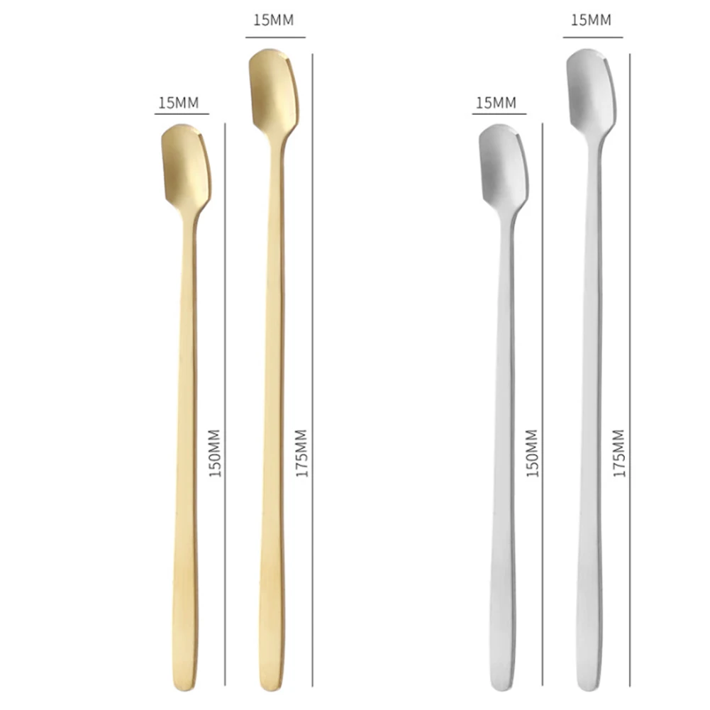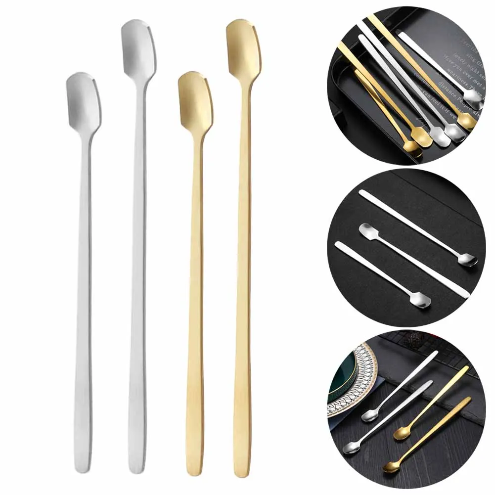 Stainless Steel Coffee Spoon Square Head Long Handle Dessert Spoon Coffee Stirrers Milk Spoon Teaspoon Kitchen Bar Tools