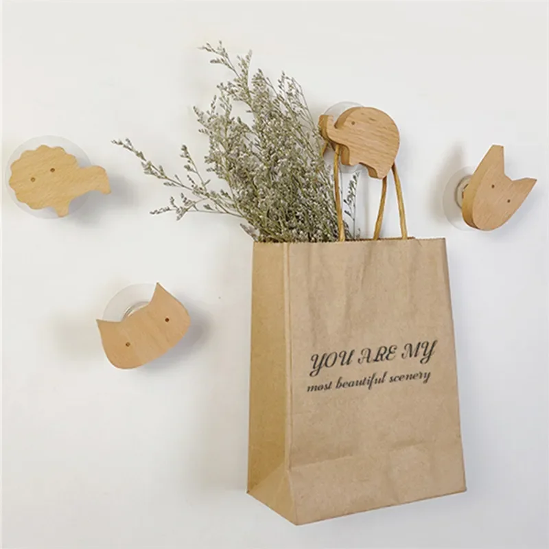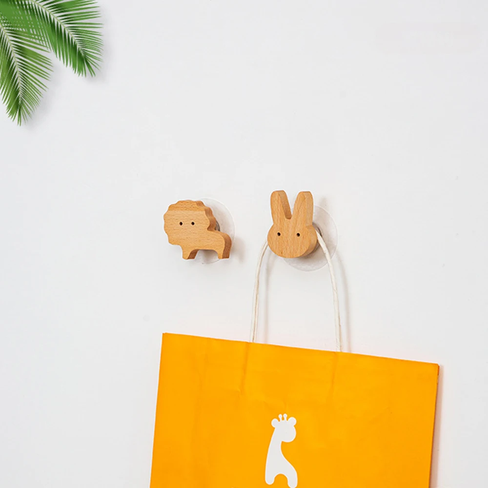 Wooden Hooks Cute Cartoon Animal Hook Wall Keychain Coat Hook Home Decoration Solid Wood Hook Hanger Kitchen Accessories 2024